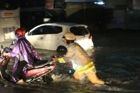 Trước đó, đêm 25-11, lực lượng CSGT - CATP HCM cũng đã triển khai các biện pháp giúp người dân di chuyển qua những nơi ngập úng.