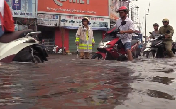CSGT CATP HCM phân luồng giao thông tại các điểm úng ngập