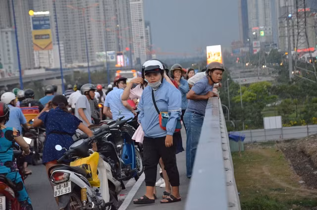 Người dân dừng xe theo dõi khiến giao thông ùn ứ