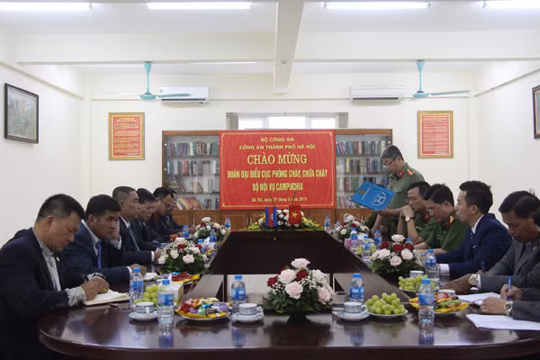 Đoàn đại biểu Cục phòng cháy, chữa cháy - Bộ Nội vụ Vương quốc Campuchia và Công an thành phố Hà Nội đã chia sẻ những kinh nghiệm cũng như những vấn đề còn tồn tại trong công tác phòng cháy, chữa cháy của mỗi bên.