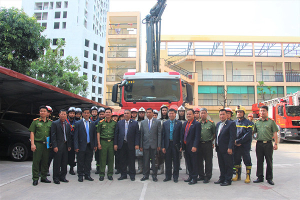 Cảnh sát PCCC và CNCH - CATP Hà Nội và Đoàn Đại biểu Cục PCCC - Bộ Nội vụ Campuchia chụp ảnh lưu niệm