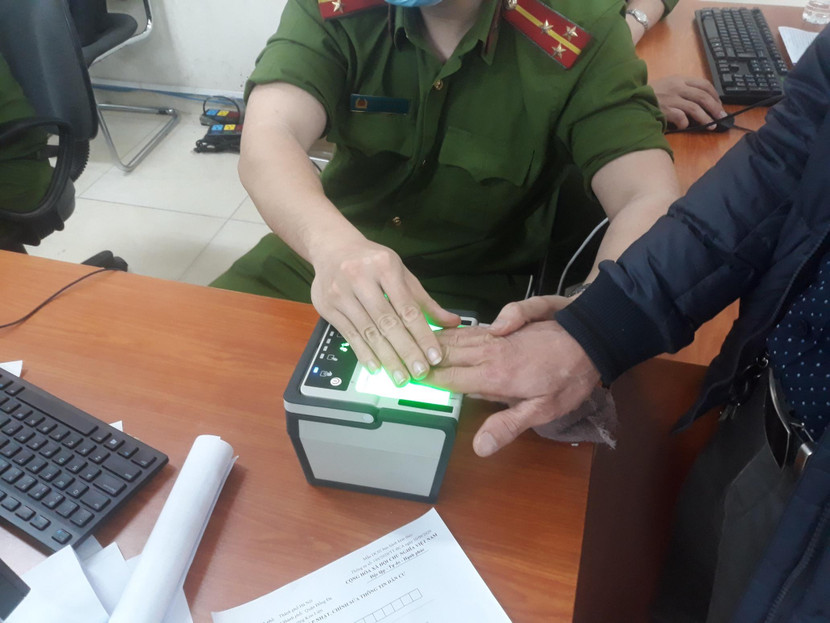 | Lấy vân tay tròn - công đoạn đòi hỏi nhiều thời gian nhất trong dây chuyển xử lý cấp CCCD |