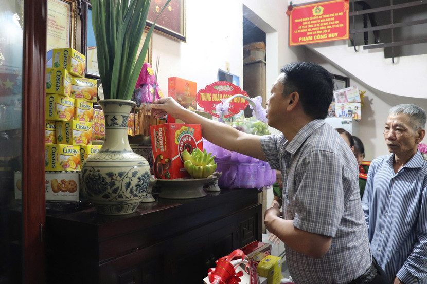 Thiếu tướng Nguyễn Hồng Ky thắp hương tưởng nhớ tại gia đình liệt sỹ Phạm Công Huy