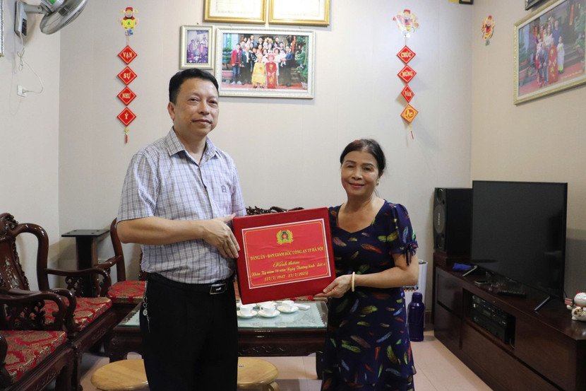 Thiếu tướng Nguyễn Hồng Ky thay mặt lãnh đạo CATP tặng quà thân nhân các liệt sỹ