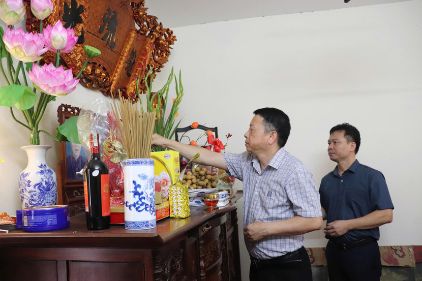 Tại nhà riêng của các liệt sỹ, Thiếu tướng Nguyễn Hồng Ky cùng các thành viên trong đoàn đã thắp hương tưởng nhớ, bày tỏ lòng biết ơn sâu sắc đối với sự hy sinh anh dũng của các đồng đội, đồng chí.