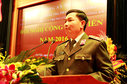 Thiếu tướng, PGS.TS Trần Vi Dân, Tổng Biên tập Tạp chí CAND báo cáo kết quả công tác của Tạp chí CAND năm 2016
