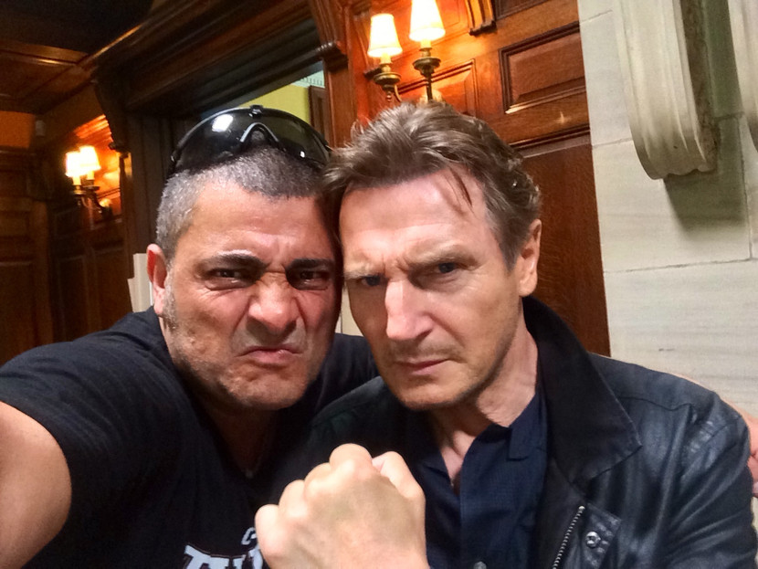 Chuyên gia võ thuật Alain Figlarz và ngôi sao hành động Liam Nesson khi thực hiện phim “Taken”