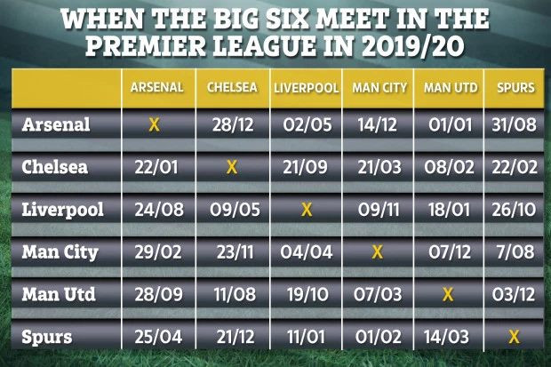 BTC Premier League cũng công bố lịch chạm trán lẫn nhau của các đội thuộc nhóm Big Six trong suốt mùa giải, cụ thể như sau: