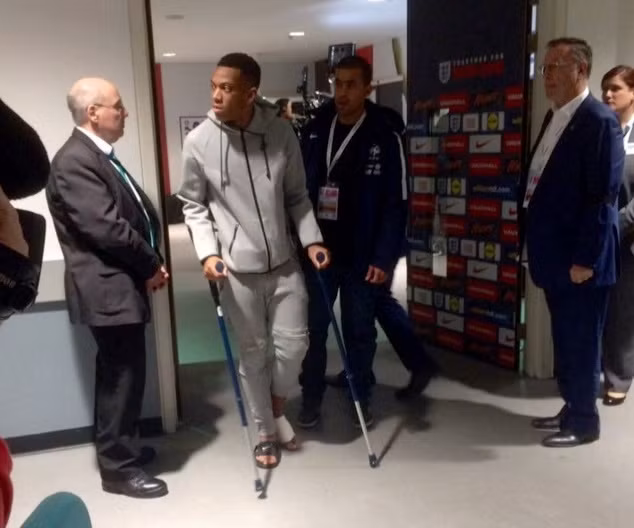 Martial bị đau vào giữa hiệp 2 trận giao hữu giữa Anh và Pháp
