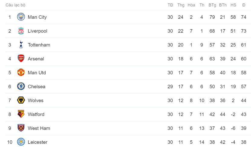 2-0 nghiêng về Arsenal là kết quả cuối cùng. Nó giúp Pháo thủ (60 điểm) đòi lại vị trí thứ 4 từ chính M.U (58 điểm). Chuỗi trận bất bại tại giải Ngoại hạng Anh từ khi lên dẫn dắt M.U của HLV Solskjaer dừng lại ở con số 12. Cũng ở vòng này, Chelsea để tuột mất cơ hội chen chân vào top 4, khi để Wolves cầm hòa 1-1 trên sân nhà.