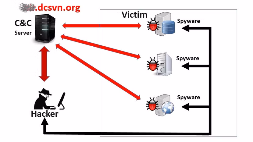Mã độc có kết nối thường xuyên, gửi các dữ liệu về máy chủ điều khiển (C&C Server) thông qua tên miền Name.dcsvn.org. Trong đó Name là tên được sinh ra theo đặc trưng của cơ quan, doanh nghiệp mà mã độc nhắm tới.