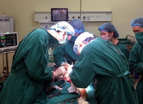 Chiều 28-3, ekip phẫu thuật bao gồm PGS.TS Trần Trung Dũng, Phó Giám đốc Bệnh viện Xanh Pôn cùng 2 bác sĩ khoa Ngoại bụng 2 - Bệnh viện K và ekip gây mê hồi sức Bệnh viện K đã tiến hành phẫu thuật cho bệnh nhân.