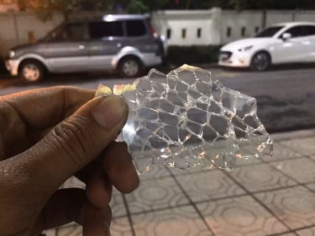 Tấm kính dày của mái che nghi bị phá hoại