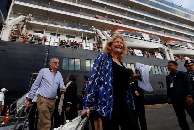Tàu du lịch MS Westerdam - chở theo 1.455 hành khách và 802 thành viên thủy thủ đoàn - rời Hồng Kông vào ngày 1-2. Tàu đã đến Campuchia vào thứ Năm tuần trước sau khi bị 5 nơi bao gồm Nhật Bản, Philippines và Thái Lan không cho cập cảng vì sợ hành khách trên tàu nhiễm virus corona.
