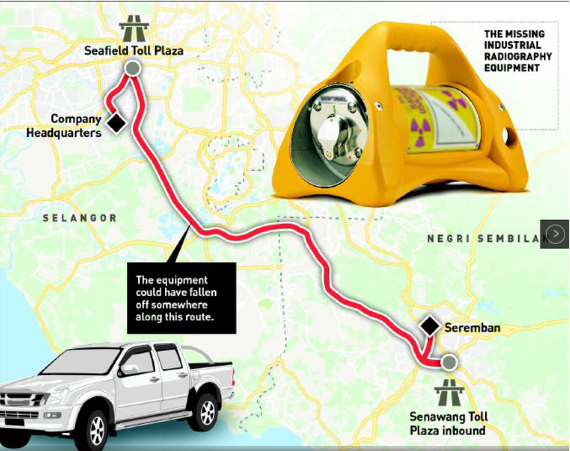 NST cho biết, hai kỹ thuật viên của một công ty đã làm mất RDD trong khi vận chuyển nó từ Seremban, Negri Sembilan đến văn phòng của họ ở Shah Alam, Selangor vào ngày 10-8.