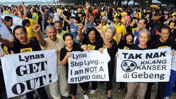 Những người biểu tình, phần lớn là người dân địa phương ở Kuantan và đại diện các tổ chức phi chính phủ tụ tập tại công viên ở Kuantan vào lúc 6h sáng để phản đối kế hoạch xây dựng nhà máy đất hiếm do công ty Lynas Malaysia Sdn Bhd, công ty con của Lynas Corporation (Australia) đầu tư. Những người biểu tình đã giương khẩu hiệu, biểu ngữ chống hạt nhân và kêu gọi chính phủ hành động để bảo vệ người dân. “Chúng tôi đáng được hưởng một môi trường lành mạnh cho thế hệ tương lai của chúng tôi. Chính phủ không thể xây dựng bất cứ cái gì dưới danh nghĩa đầu tư phát triển” - một người dân tham gia phản đối nói.