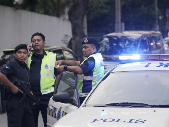 Cảnh sát Malaysia tại khu vực bên ngoài Đại sứ quán Triều Tiên tại Kuala Lumpur
