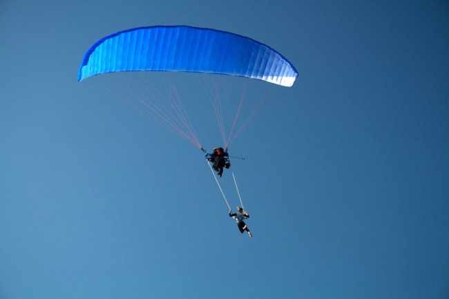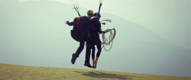 Nguy hiểm rình rập, bộ đôi này vẫn khăng khăng biểu diễn màn đu dây đến 2 lần để đội ngũ quay phim, có thể quay được những cảnh đẹp nhất, bởi trong lần quay đầu tiên, họ đã ở quá xa máy quay của Adrien Sham, người chuyên làm phim phiêu lưu và cũng đang bay cạnh họ trên một chiếc dù lượn khác.