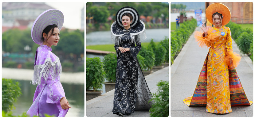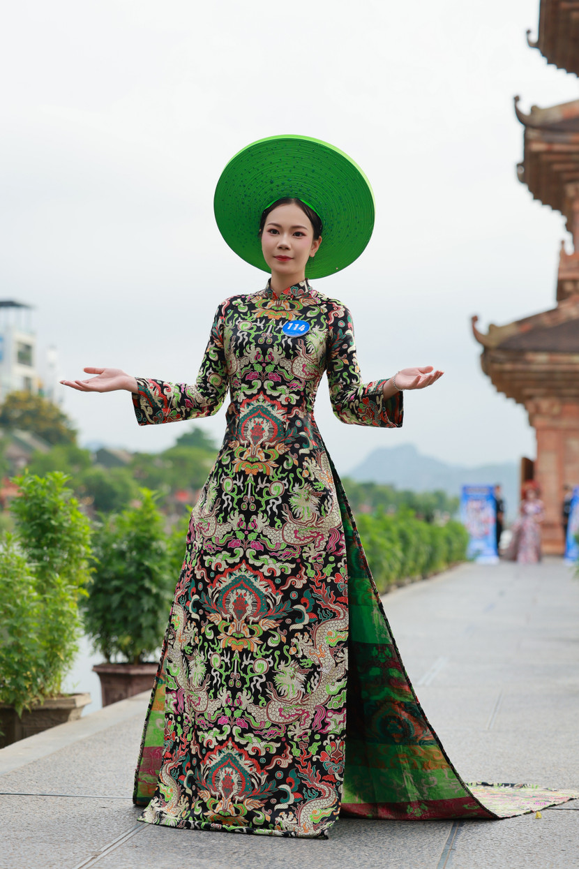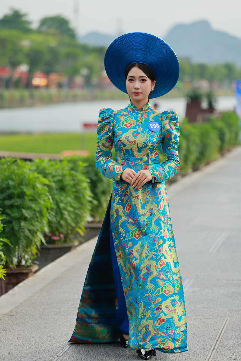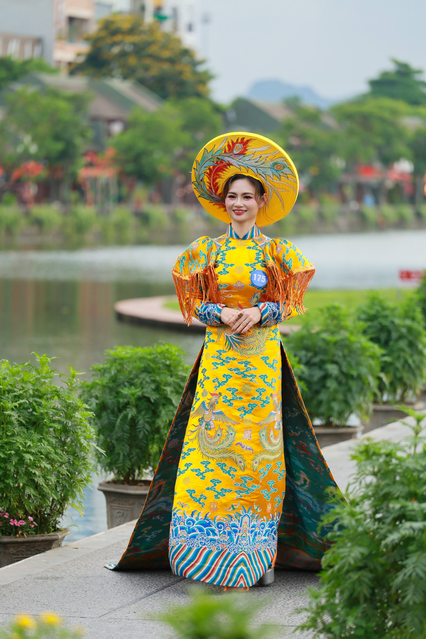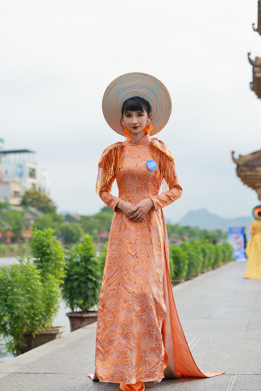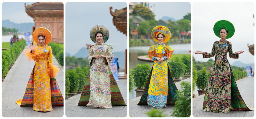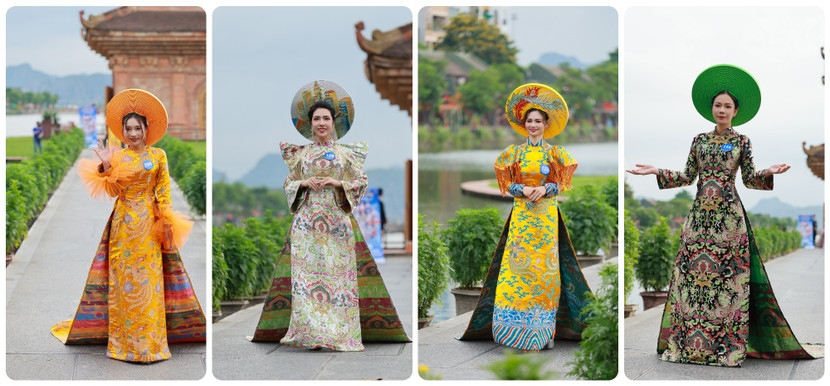 Các bộ trang phục áo dài được nhà thiết kế Tony Phạm thực hiện riêng cho cuộc thi khéo léo lồng ghép nghệ thuật thêu tay tinh xảo cùng những họa tiết gợi nhắc đến giá trị văn hóa lâu đời như: trống đồng, hoa sen, hoa văn cung đình...Trong không gian linh thiêng và cổ kính của Hoa Lư, các thí sinh đã trình diễn những thiết kế áo dài truyền thống mang tính biểu tượng, như những lời tri ân trang trọng gửi đến di sản văn hóa dân tộc.