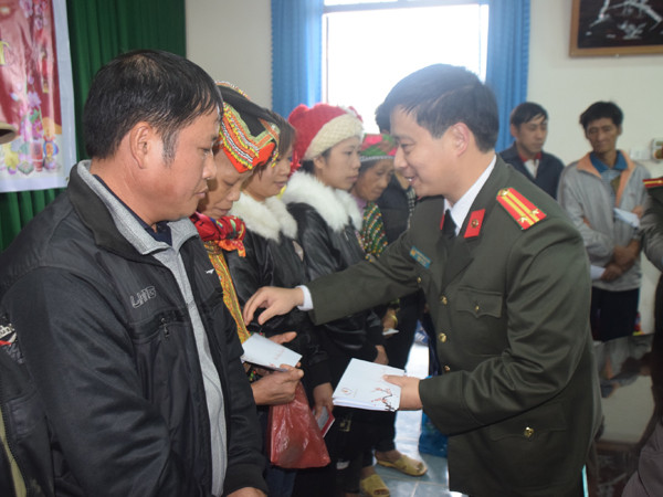 Hay tin những xóm này được nhận quà Tết của đoàn công tác, ngay từ đầu giờ chiều bà con đã kéo đến chật kín cả hội trường xã. Nhận xong phần quà Tết từ tay chúng tôi, cụ Ngô Thị Pằng (80 tuổi, người Mông) lặng lẽ nép vào một góc hành lang run run bóc ra xem rồi lén túm vạt áo chấm nước mắt. Cụ Pằng không nói được tiếng Kinh nên anh hàng xóm đi cùng phải đỡ lời: “Nhà này khổ lắm, không có gạo ăn đâu. Thằng Lý Văn Chờ - con trai bà Pằng đi làm củi trong rừng bị tai nạn cụt một chân rồi. Bây giờ nó nằm một chỗ, phải nuôi nó”.