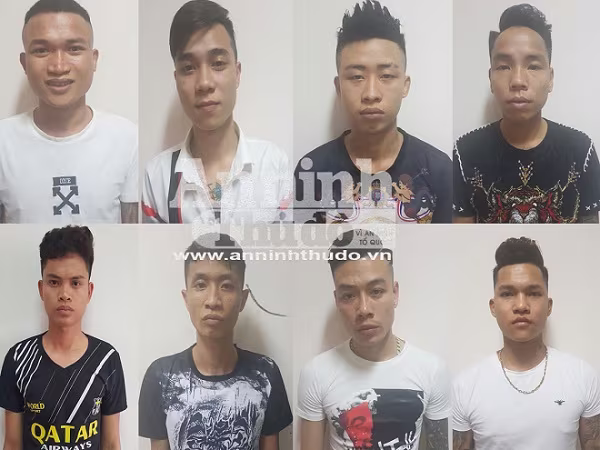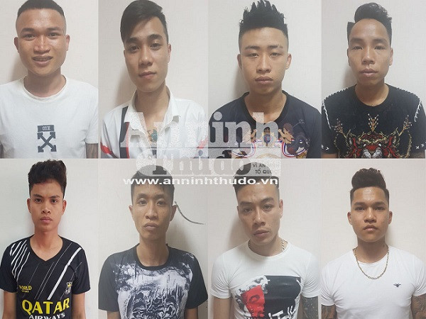 Danh tính các đối tượng gồm: Đỗ Thanh Tùng (SN 1992), Phạm Văn Tùng (SN 1998), Trần Trí Bắc (SN 1996), Hoàng Văn Hiếu (SN 1989), Nguyễn Minh Tuấn (SN 1993), Phan Văn Tư (SN 1999), Mai Văn Quang (SN 1999), Đinh Trọng Hà (SN 1995) đều ở phường Ngọc Lâm, quận Long Biên.