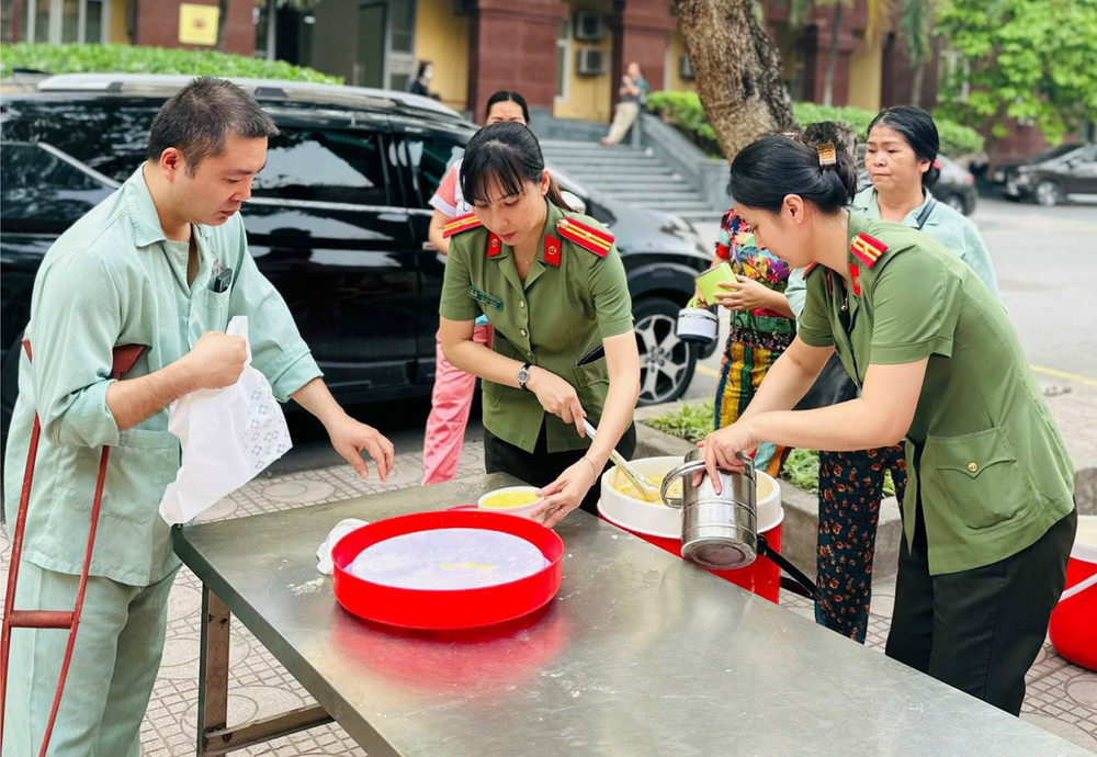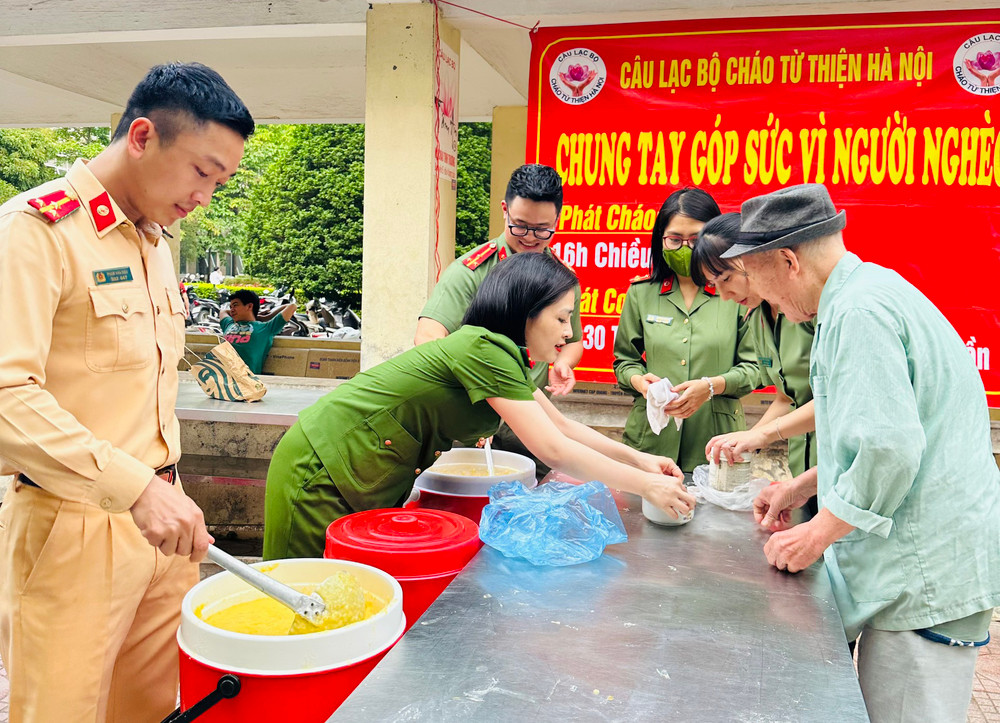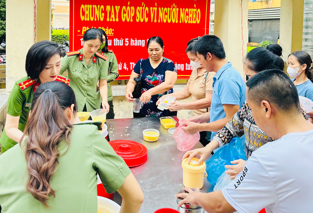 ANTD.VN - Mặc dù bận rộn với công tác chuyên môn nhưng các cán bộ, chiến sĩ Công an quận Tây Hồ (Hà Nội) tranh thủ giờ nghỉ trưa chuẩn bị các nguyên liệu, sơ chế và nấu những nồi cháo thơm ngon, đủ dinh dưỡng, đảm bảo vệ sinh an toàn thực phẩm để trao đến từng bệnh nhân và người nhà bệnh nhân đang điều trị tại Bệnh viện E.