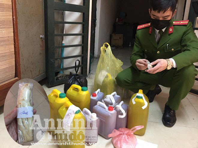 Tiến hành điều tra vụ án, Đội Cảnh sát hình sự Công an quận Đống Đa đã truy xét và bắt giữ Bùi Văn Huân khi đối tượng đang trên đường đi giao 5 can nhựa khoảng 20 lít dung dịch màu vàng.