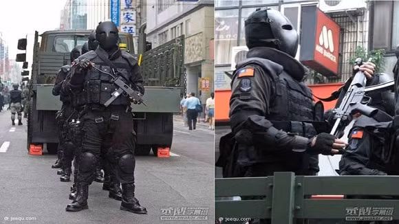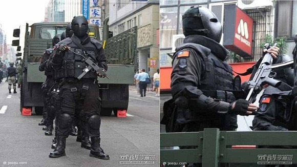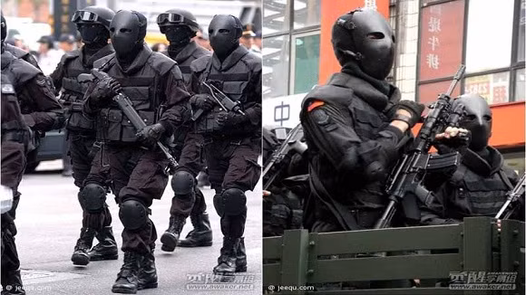 Tất cả các binh sĩ trong ảnh đều mang vũ khí hạng nặng bao gồm súng trường, khiên chống đạn và súng tiểu liên, nhưng những hình ảnh thu hút đặc biệt cư dân mạng là những tấm hình các lực lượng đặc biệt đeo mặt nạ chống đạn.