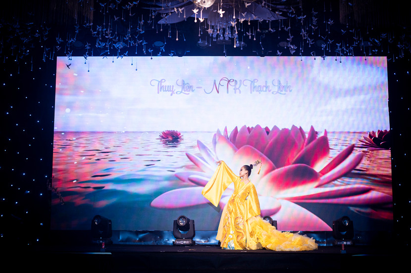 | Thiệu Vy cùng nhà thiết kế Thạch Linh (bên trái) và Hoa hậu Nguyễn Thị Hà (bên phải) |