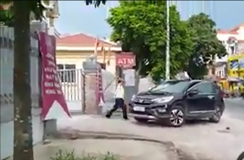 Sáng 4-8, trên mạng xã hội (facebook) xuất hiện clip ghi lại hình ảnh người đàn ông cầm vật giống thanh sắt dài liên tục đập phá xe ôtô màu đen. Sự việc xảy ra trước cổng trụ sở một ngân hàng có chi nhánh tại khu Thị An, thị trấn Hưng Nhân, huyện Hưng Hà, tỉnh Thái Bình).