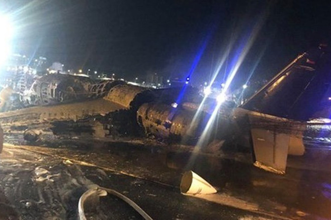 Trước khi nhấc lên không trung, máy bay đột nhiên bốc cháy, và lao khỏi đường băng. Lực lượng cứu hỏa phải mất 1 giờ để dập tắt đám cháy.