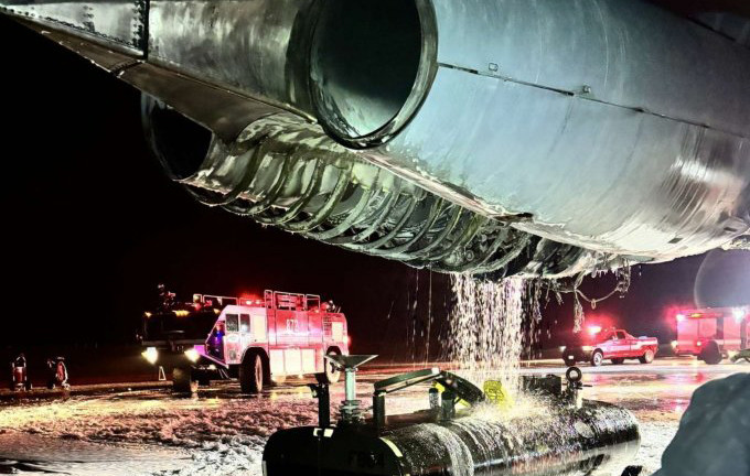 Máy bay ném bom chiến lược B-52H Mỹ cháy động cơ, hạ cánh khẩn cấp