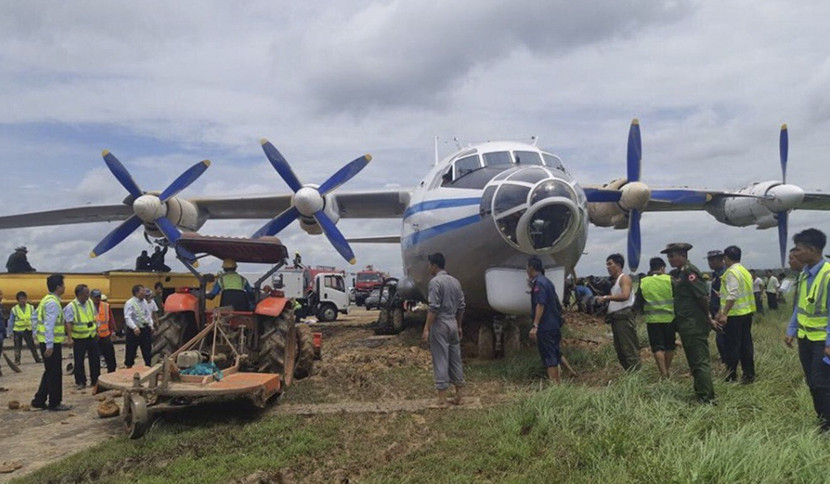Chiếc máy bay vận tải Y-8-200F đã trượt khỏi đường băng sân bay quốc tế Yangon vào sáng 5-9 sau khi bị hỏng động cơ.