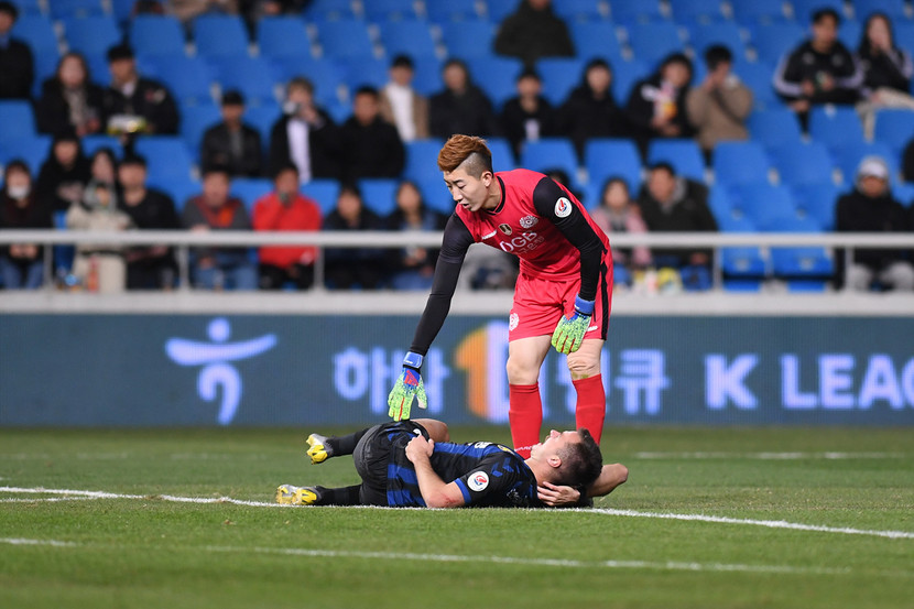 Trong trận thua đậm Daegu FC 0-3 ngay trên sân nhà ở vòng 5 K-League 2019 vừa qua, tiền đạo số 1 của Incheon United là Stefan Mugosa đã bị chấn thương rất nặng sau một pha va chạm.