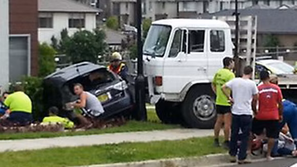 Trước đó, chiếc ôtô con này đã va chạm với một chiếc xe tải màu trắng tại giao lộ đường Trusscott Ave và Middleton Drive, thuộc Middleton Grange, Australia.