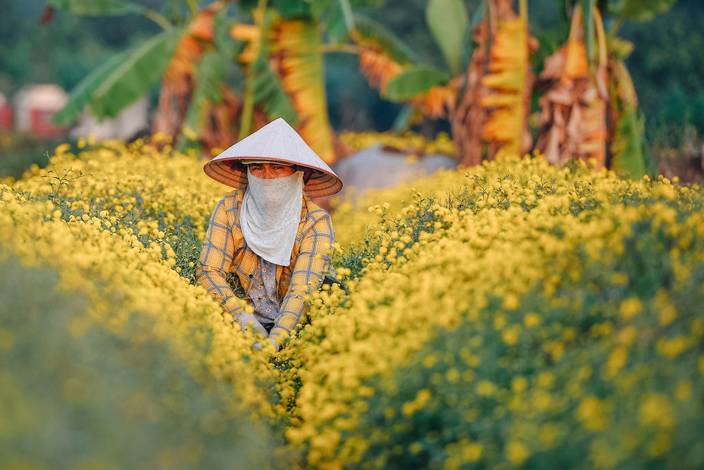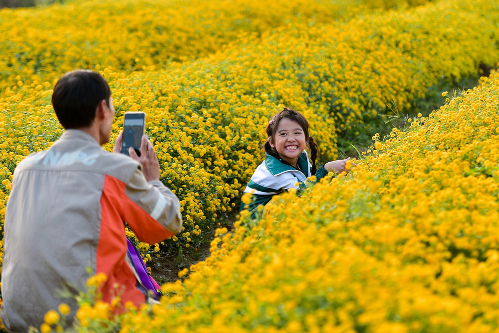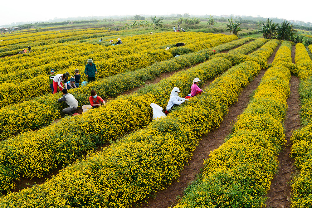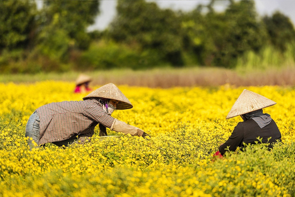 ANTD.VN - Về thôn Nghĩa Trai (xã Tân Quang, huyện Văn Lâm, tỉnh Hưng Yên) vào những ngày này, đâu đâu cũng ngát hương thơm và được nhuộm vàng bởi những cánh đồng hoa cúc chi khoe sắc trong nắng sớm mùa đông.