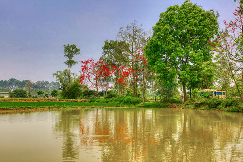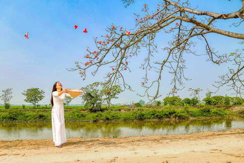 ANTD.VN - Đến xã An Mỹ thuộc huyện Mỹ Đức, nằm cách trung tâm thành phố Hà Nội hơn 30km, người yêu phong cảnh làng quê Bắc bộ sẽ được đắm chìm trong vẻ đẹp đầy mê hoặc của những cây hoa gạo đỏ rực trời chạy dài theo con mương nhỏ của thôn Đoan Nữ. Đây là địa điểm lý tưởng không thể bỏ qua để có được những bức hình đẹp về hoa gạo.