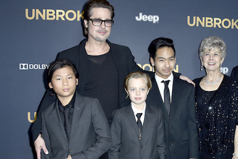 Pax Thiên cùng Brit Pitt và 2 anh em Maddox, Shiloh trong sự kiện ra mắt bộ phim "Unbroken" vào tháng 12-2014