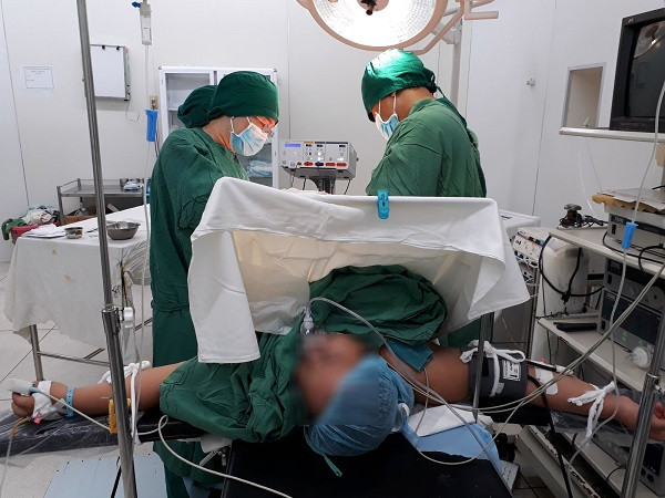 Tại bệnh viện, bệnh nhân đã trong tình trạng sốc mất máu, vỡ tử cung, thai nhi 39 tuần đã tử vong trong bụng mẹ. Các bác sĩ đã lập tức mổ lấy thai nhi, đồng thời cắt tử cung bán phần cho sản phụ. Hiện, bệnh nhân đã qua cơn nguy kịch, vẫn trong tình trạng thiếu máu và cần theo dõi thêm.