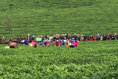 Hội trà trên cao nguyên Mộc Châu đã tổ chức cuộc thi hái chè với sự tham gia của 6 đội chơi