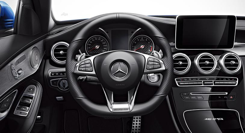 Thiết kế thể thao tiếp tục được nhìn thấy bên trong buồng lái với việc ghế ngồi thể thao bọc da, vô-lăng phẳng, bàn đạp bằng thép không gỉ, táp-lô bọc da Artico, nhiều chi tiết trang trí bằng nhôm và những đường kẻ trang trí màu đen. Nhiều điểm đáng chú ý khá như cụm phím bấm điều khiển và thảm trải sàn mang đặc trưng của AMG và ngưỡng cửa xe được ốp kim loại.