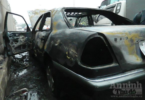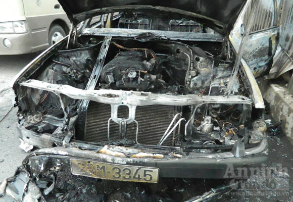 Chỉ sau khoảng 15 phút, toàn bộ chiếc ôtô du lịch đã cháy đen, trơ khung sắt. Ông Linh cho biết thêm, chiếc xe này ông mua lại vào năm 2006, trước đó, chủ cũ đăng ký lần đầu tiên năm 2001.