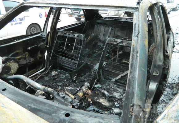 Tài xế cho xe tấp vào giải phân cách cứng giữa đường, rồi cả 4 người trên xe bung cửa nhảy ra ngoài. Lúc đó xe chưa cháy ngay mà phía dưới nắp ca-pô, khói bốc lên mỗi lúc một nhiều; cuối cùng ngọn lửa bùng phát, dần bao trùm toàn bộ thân xe.