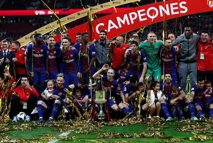 Cầu thủ Barcelona ăn mừng chức vô địch Cúp Nhà Vua thứ 4 liên tiếp