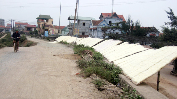 Dừng xe hỏi một cô gái đang say sưa lật từng phên miến phơi ở đầu làng, rằng “phơi miến như thế này thì bụi bẩn, mất vệ sinh quá?”, cô gái hồn nhiên trả lời “mùa này giáp Tết, trong làng nhà nhà đua nhau làm miến cho đủ bán, kiếm được một chỗ phơi là tốt lắm, lấy đâu ra mà chọn lựa hay tránh đoạn bụi bẩn”. Nói rồi cô gái chỉ ra phía cánh đồng, nơi những ruộng đất trống sau vụ thu hoạch cũng đã được phủ vàng bởi các phên miến phơi gió. Cô gái bảo: “mùa này toàn cánh đồng gần như bỏ trống bởi người dân đều tập trung làm nghề, nên phơi miến ở đó còn an toàn, chứ bình thường có nhiều hộ làm màu, phun thuốc sâu nhiều, phơi miến ở đó tránh được bụi nhưng còn nguy hiểm hơn nhiều phơi mặt đường”.