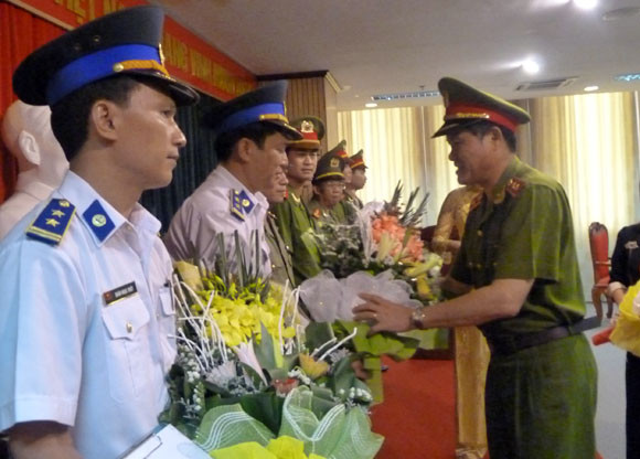 Trung tướng Đỗ Kim Tuyến trao thưởng cho đại diện các tập thể tham gia 2 chuyên án