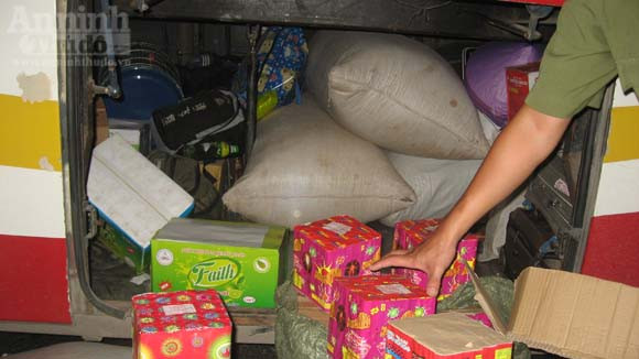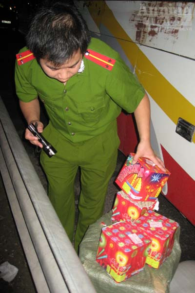 Qua kiểm tra, lực lượng công an phát hiện trong khoang hành lý có các bao tải lớn, bên trong đựng nhiều thùng carton. Kiểm tra kỹ số hàng, cảnh sát phát hiện hàng trăm hộp pháo, trọng lượng ban đầu ước tính trên 100kg.