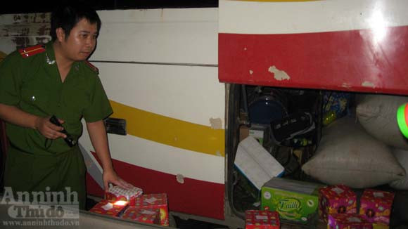 Khoảng 23h đêm qua (13-8), Tổ kiểm tra tuyến - CATP Hà Nội do Phòng Bảo vệ Chính trị 4 chủ trì, phối hợp với Đội chống buôn lậu - Phòng CSĐT tội phạm về TTQLKT&CV, làm nhiệm vụ ở đầu đường cao tốc Pháp Vân, phát hiện xe khách giường nằm, 2 tầng, BKS 20B-001.43 chạy tuyến Thái Nguyên - Hà Tĩnh biểu hiện nghi vấn để yêu cầu dừng xe kiểm tra.