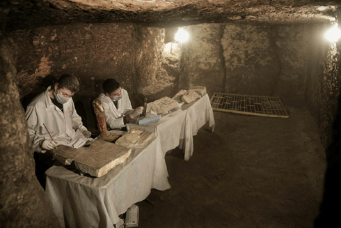Các nhà khảo cổ học đang nghiên cứu bên trong các mộ cổ mới phát hiện ở Saqqara