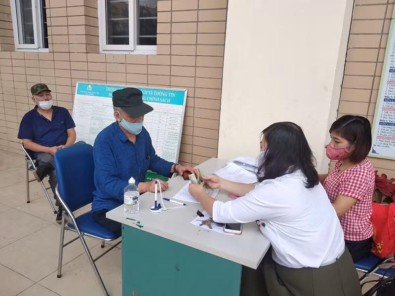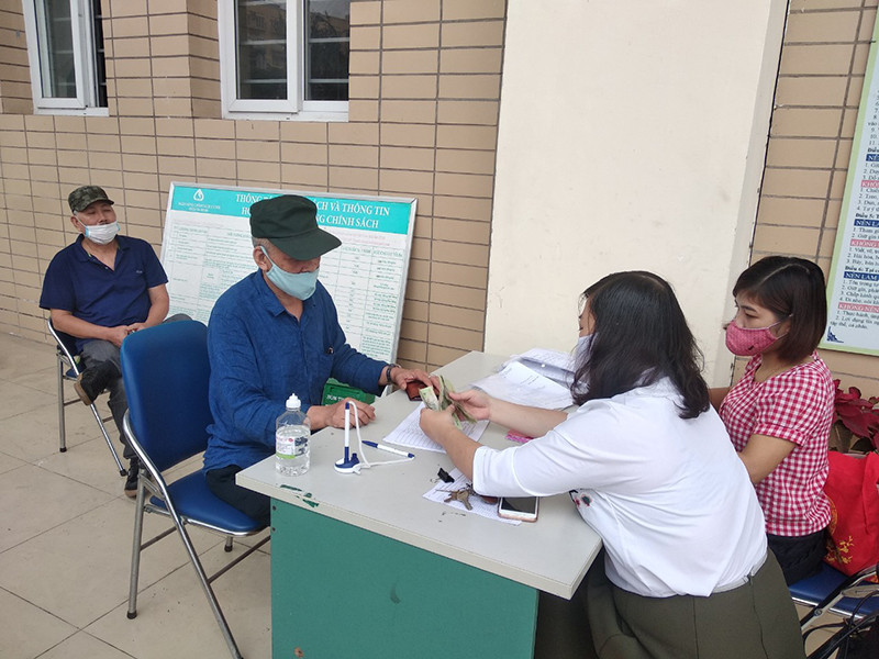 Người dân nhận tiền hỗ trợ tại phường Liễu Giai (Ba Đình, Hà Nội)